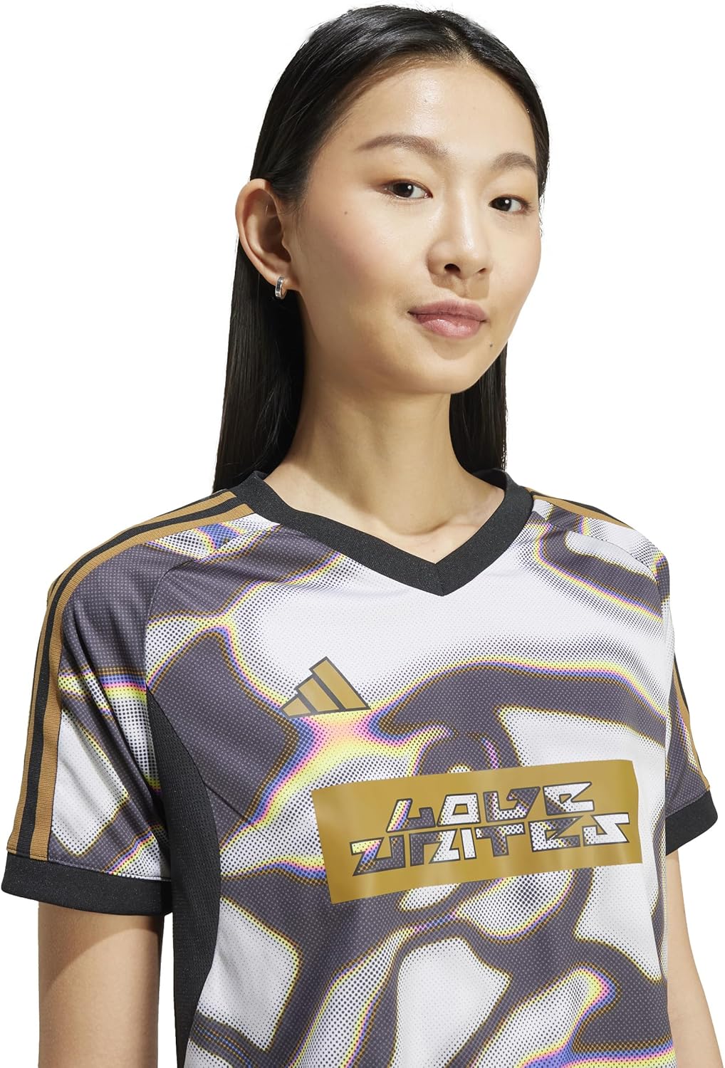 Celebrate Pride and the courage to be your true self in this women's adidas soccer jersey, created in collaboration with Brazilian artist Pabllo Vittar. It's cut with a soft interlock fabric to keep you comfortable, with an iconic ribbed V-shaped neckline for that classic soccer look. It features a bold allover print with a reminder that "Love Unites."