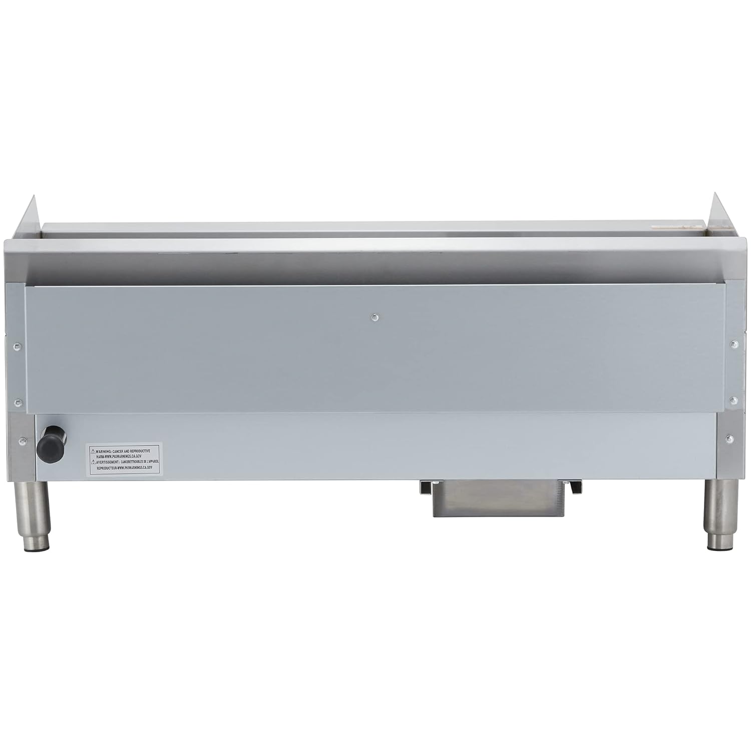 The Iron Range IRTG-36 36" x 21" Countertop Commercial Gas Commercial Griddle with Thermostatic Control provides the durability and performance you need to get the job done. The efficient 3/4” griddle plate offers the thickness of even heat distribution and retention along with the Iron Range “quick on” that turns the burners on when the probes sense temperature drop. This gives you important quick temperature recovery when cooking. The result is faster cook times. They are available in 24”, 36” and 48” widths. Units are shipped for natural gas but are easily converted to LPG (propane) gas with the LPG conversion kit that is included. All Griddles carry ETL approval for gas and sanitation that pass USA requirements for use in food service. Item Details: Stainless steel front, sides, and backsplash Double wall construction with insulated side panels 4” high backsplash and sidesplash fully welded to the griddle 4” adjustable non skid stainless steel legs Removable, easy to clean full width stainless grease catch pan - wide 3 ¼” front grease trough ¾” highly polished griddle plate provides even heat distribution Extended cool to touch front edge High performance and efficient stainless steel burners giving off 30,000 BTU/burner U-style burners provide flame every 6” on the griddle surface Temperature range from 200°F - 450°F Large temperature knobs with set screws Individual pilot lights with front access LPG conversion kit included